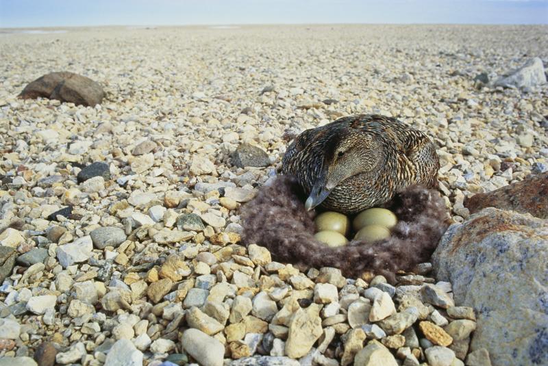 Eider duck is a kind of wild duck with large body shape which has been protected by Iceland law 100 years ago. Its Latin name is: Somateria Mollissima. The male eider duck has white body plumages with black head, black abdomen and black tail. While the female eider duck usually has dark brown body plumages. Every spring, eider ducks will gather at the North Atlantic coast for nesting. Each mother duck plucks off around 17 grams of brown-grayish, soft duck down from its chest. Mother duck piles her down clusters around her nest to maintain the temperature for hatching. After the ducklings are hatched, all the eider ducks will go back to Atlantic Ocean. The eider down remained in the duck nests then become the unique premium eider down in the world.