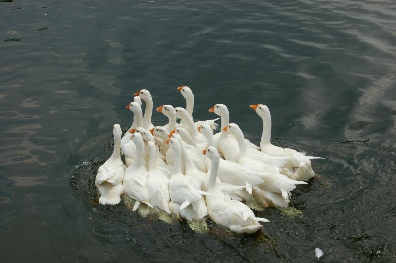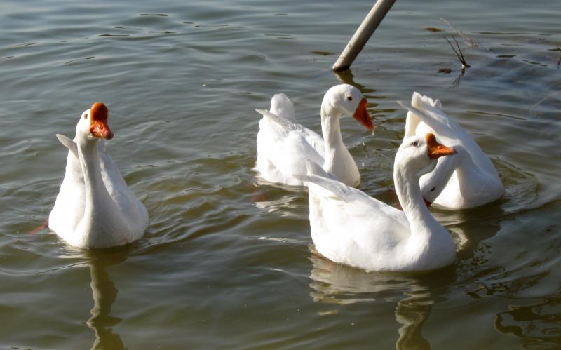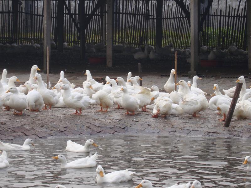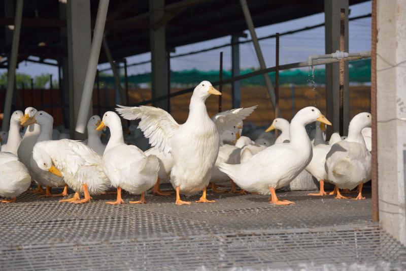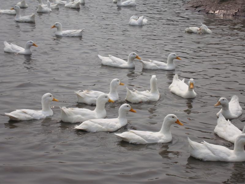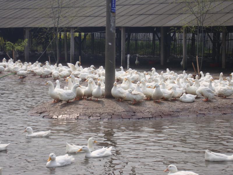 Peking White Duck is a world-famous duck breed for meat purpose. Significant advantages such as early maturity and large body size, it is the main ingredient of the gourmet dish “Peking Duck”. Peking white duck has white plumages with light yellowish color inside. It has rectangle body shape, round chest and flat back. It has small wings on the body side and curled tail at the back. Peking White Duck is originated from Jade Spring Hill in Western Beijing. Now the breeding of Peking White Duck has spread all over the world, it has gained a significant position in global duck breeding industry. European breeders have modified the original Peking White Ducks to Cherry Valley Ducks and Maple Ducks, who are more adapted to bulk industrial production.