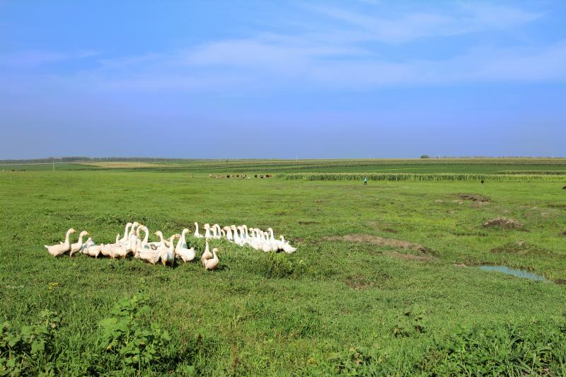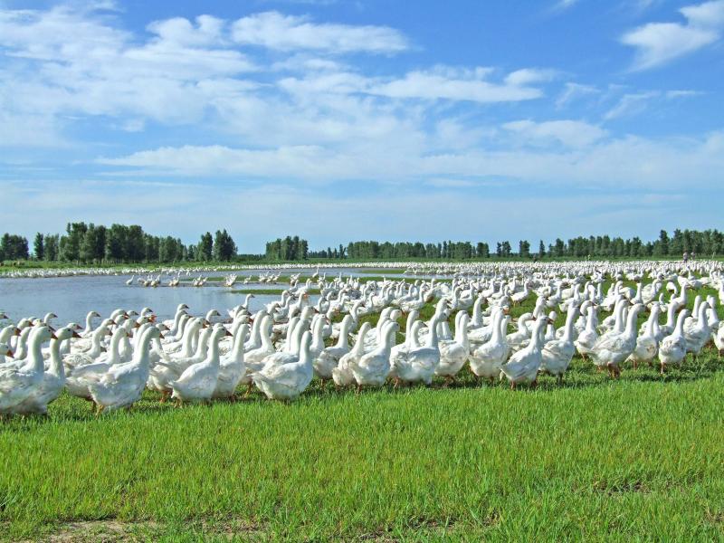 The geographical conditions in Hungary are ideal for goose breeding. Over half of this country are broad meadows which are suitable for animals to live and reproduce. The rivers and small lakes near these meadows provide sufficient water resources which are essential for breeding.
