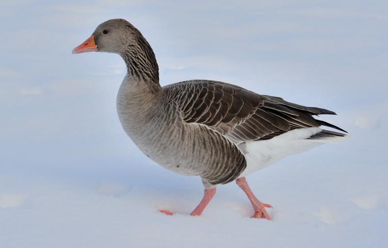 Hortobagyi white goose has a large body covered by plump, fluffy, pure white plumages. It also has broad, smooth chest, ovalized large head with blue eyes and jacinth beak. The orange feet and webs make sure it can run fast. Unlike the lion-head goose, it does not have sarcoid on its head. The goslings have grey-brownish feathers on their backs. Hortobagyi goose is an outstanding goose breed from Hungary, the Hortobagyi goose down has excellent qualities such as higher down content, pure white color, large down clusters, fewer residues, soft hand feel and high fill power.